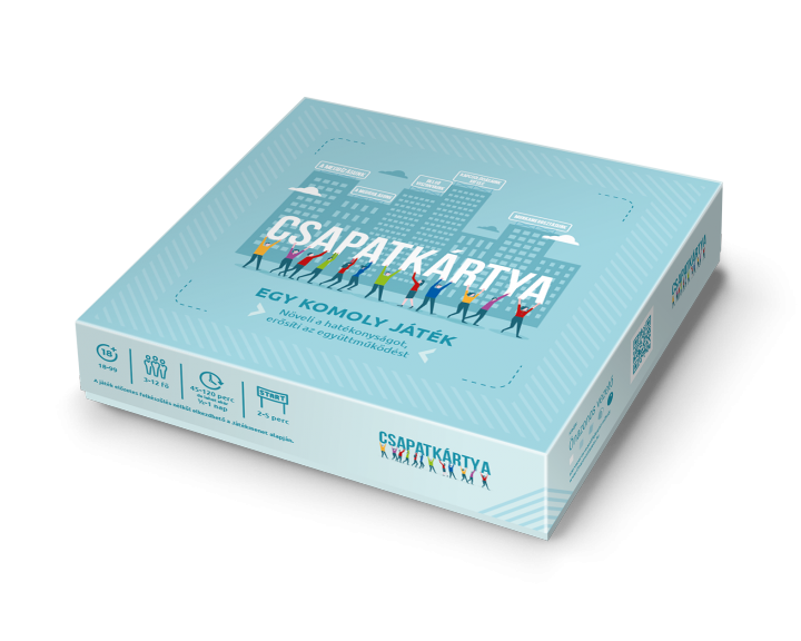 Ezért igazán büszkék vagyunk rá, hogy mi nyertünk, és amiatt is, mert ennek a társasjátéknak az a különlegessége, hogy az egyén helyett teamekkel foglalkozik. Egyébként szoktuk mondani, hogy a Csapatkártyában rejlő lehetőségeket még mi is tanuljuk, mert hogy sokkal nagyobb annál, mint amit beleláttunk a megalkotásakor. Hihetetlen, de akár egy egész szervezetet is képes megmozgatni! Minden további nélkül alkalmazható egy 100 fős szervezetnél úgy is, hogy párhuzamosan 10 vegyes csoportban játszanak a szervezet egészének együttműködése kapcsán, és aztán együtt megnézik, melyik csoport mire jutott. Az eredmény a közös élményen és előre vivő megoldásokon túl egy diagnózis /visszajelzés lesz a szervezet egészének működésére. Bár nincs ránk szükség a játék használatához és a dobozt úgy alakítottuk ki, hogy egy team önmagában, külső facilitálás nélkül is tudja játszani, mindig hangsúlyozzuk, hogy egy team coach kezében megsokszorozódhat a hatása. Emiatt kétfelé kínáljuk a Csapatkártyát: egyrészt vezetőknek, cégeknek és csapatoknak, másrészt tanácsadóknak, trénereknek, coachoknak, szervezetfejlesztőknek. Megcsináltuk a társasjáték az angol nyelvű verzióját is, a Team Works Game-t, aminek létrejöttét a kölni Zukunft Personal Europe vásáron való részvétel lehetősége indukálta. Az online változat pedig már a COVID-nak „köszönhető”.