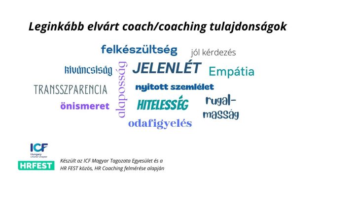 A legtöbbször, szám szerint 19-szer említett tulajdonság a hitelesség volt, ezután  következett 18 említéssel az empátia, illetve a szakmaiság és a szaktudás, azaz hogy a coach  érti, mire van szüksége az ügyfelének, és nem sablon megoldásokat ajánl fel neki. A  tapasztalat 12-szer fordult elő, különböző jelzőkkel párosítva, mint például szakmai, üzleti, élet,  gyakorlati, coaching illetve vezetői tapasztalat. A megbízható tulajdonság is népszerű volt, 10  alkalommal került említésre. A válaszadók szerint egy jó coach jól tud kérdezni, a válaszokat értő, odafigyelő, megértő hallgatóságként hallgatja, miközben nem ítélkezik. Ezen kívül  hatékony, nyitott gondolkodású, tartja a kereteket, egyenes, türelmes, de közben feszegeti is  a coachee határait. A jó coach legyen diszkrét, őszinte, következetes, határozott alapos,
