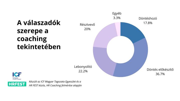 A válaszadók nagy része között a közös pont a döntés előkészítésében való részvétel.  Ezen kívül közel azonos arányban található meg a válaszok között a döntéshozó, a  lebonyolító, illetve a résztvevő szerep. Az ábrában szereplő, egyéb lehetőségnél található  hármas szám az oktatást, a szakmai kiválasztást, illetve azt fedi le, hogy adott cégnél nincs  kifejezetten coaching.